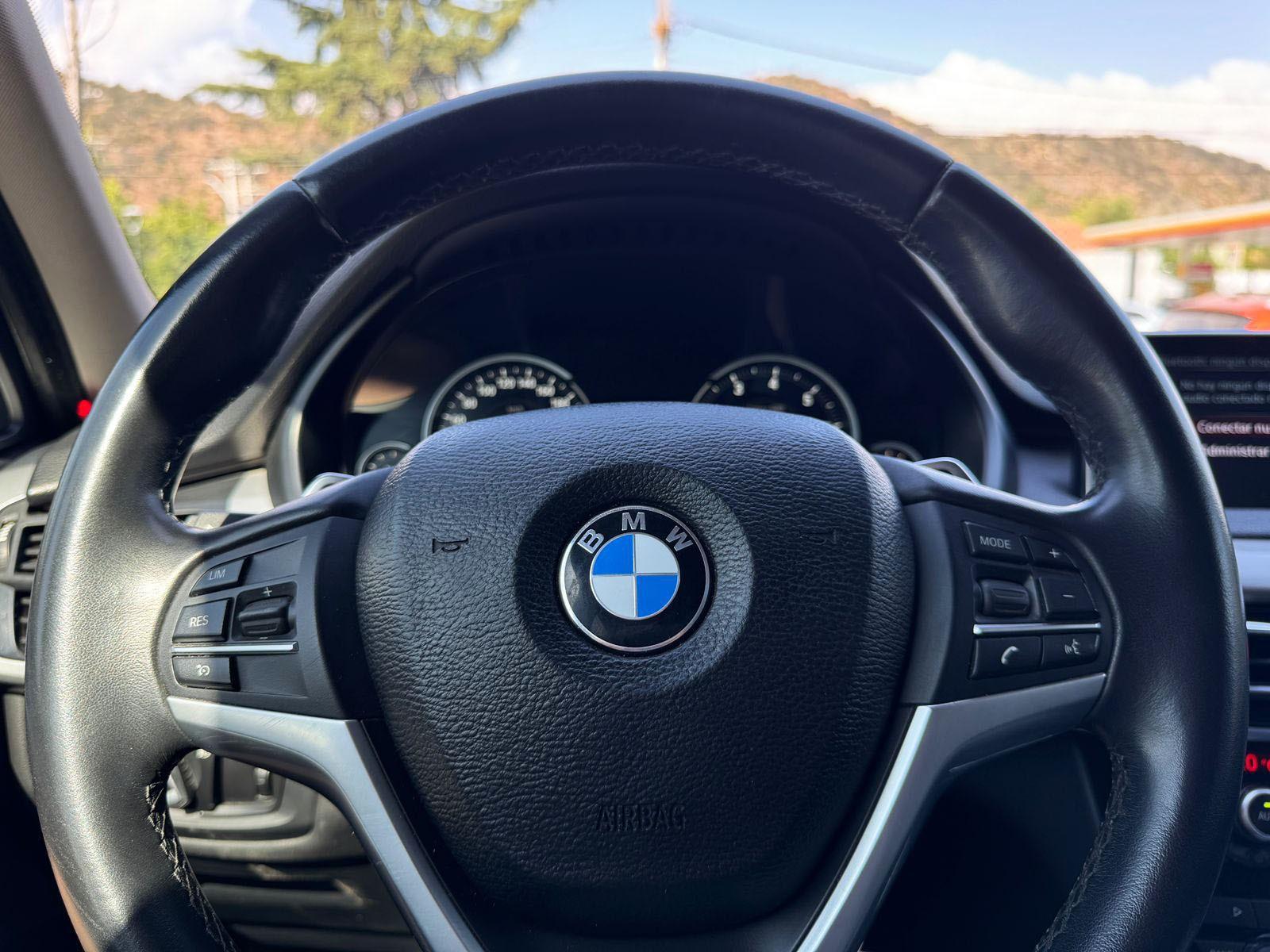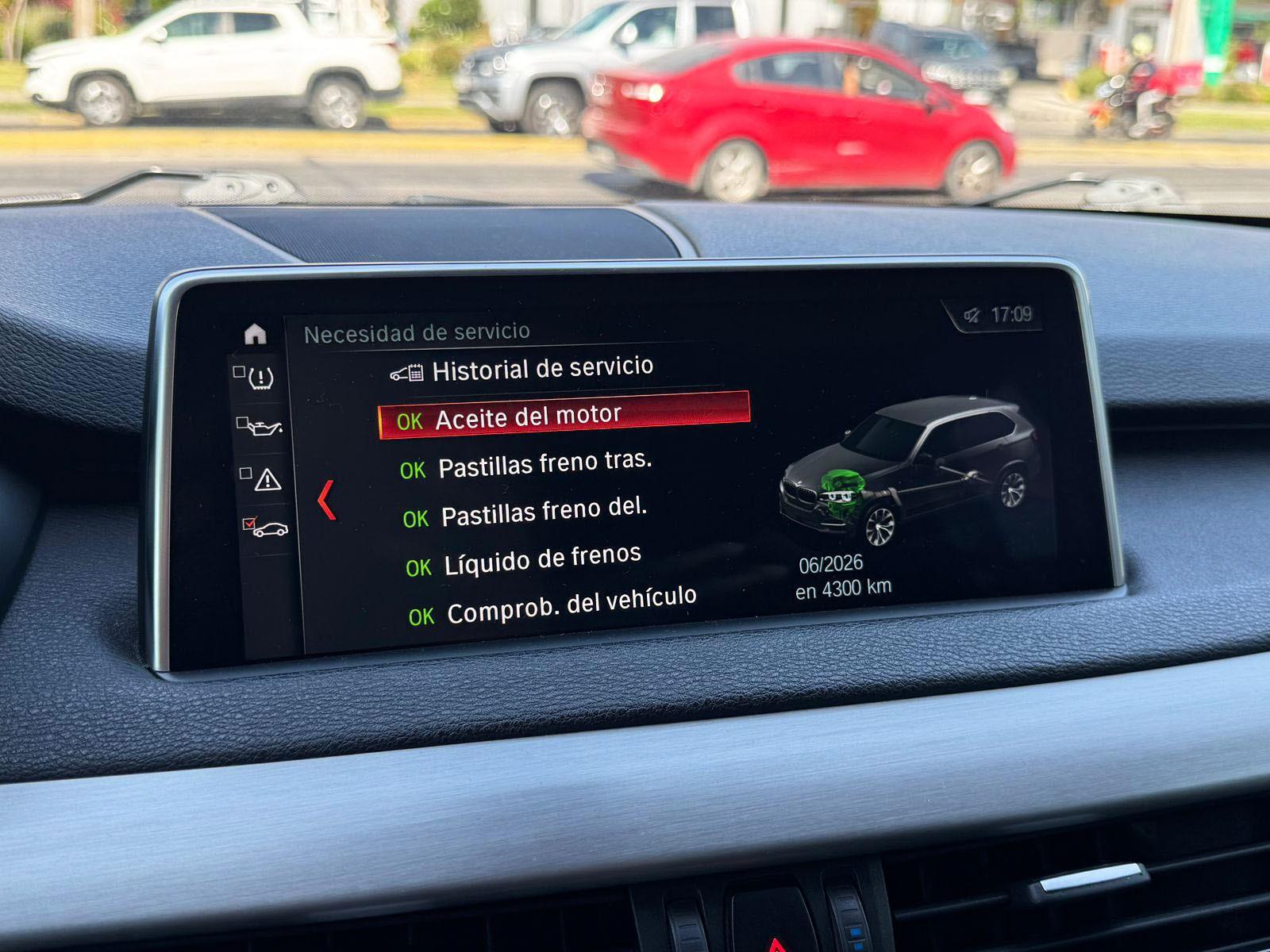Mantenimiento al día (cuatro llantas y neumáticos nuevos), versión 35i, motor seis cilindros 3.000 CC Twin Power turbo con 306 HP y 400 NM, caja de cambios automática Steptronic ocho velocidades con paddle shift, tracción integral permanente xDrive, volante multifuncional con velocidad crucero, computador a bordo, tablero digital, pantalla iDrive con cámara trasera de estacionamiento y navegador, climatizadores independientes, molduras de aluminio, asientos eléctricos con memorias y calefacción, techo panorámico.