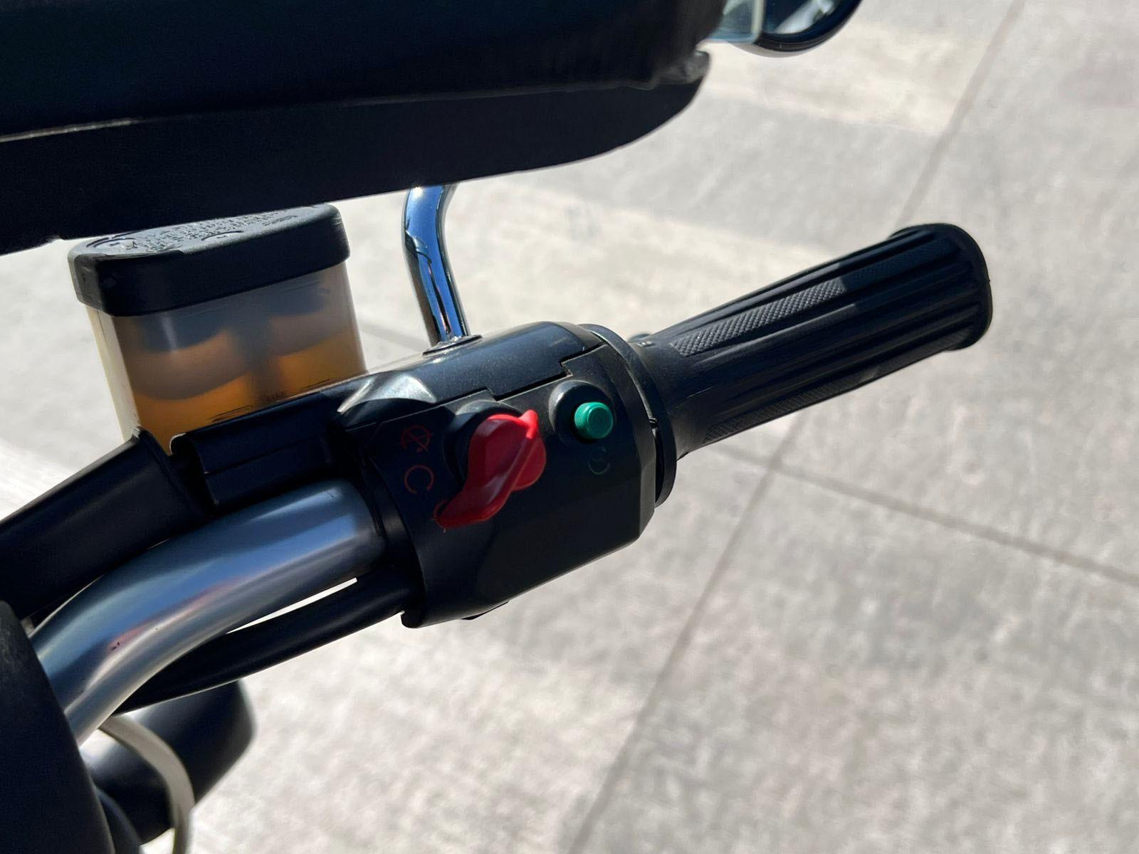 Motor 800 CC refrigerado por aire, frenos con discos perforados, encendido electrónico, case lateral rígido original.